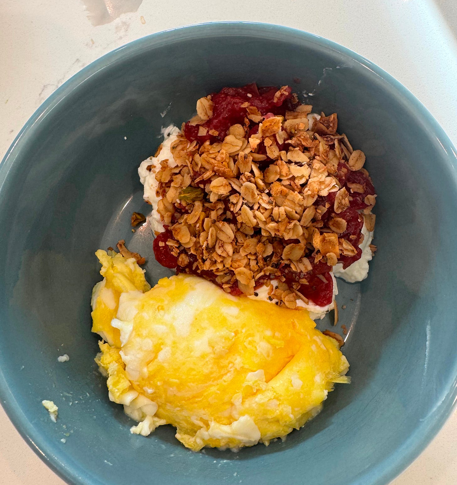 I pair with 2 eggs as my “sweet” side with a boost of even more protein.